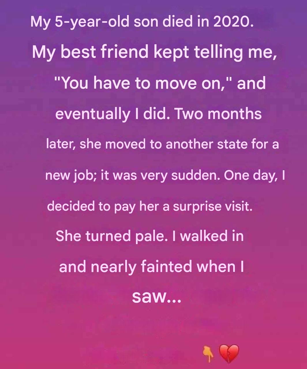 Two months later, he suddenly moved to another state for a new job.