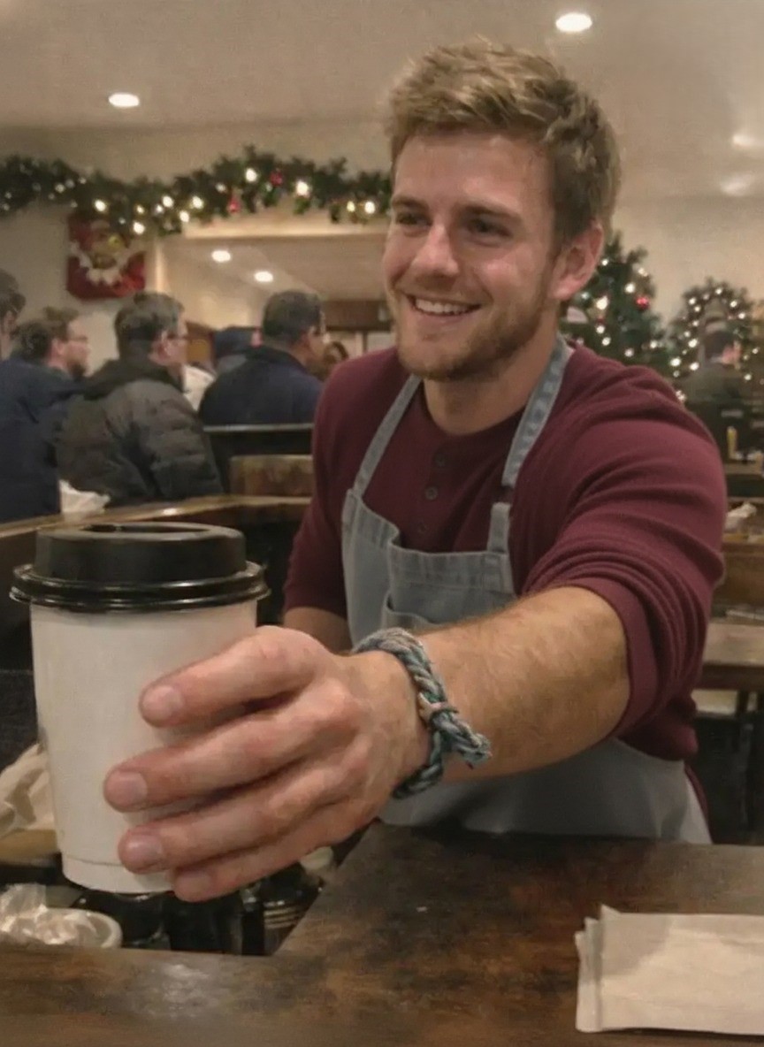Then, on a layover in an unfamiliar city, I wandered into a crowded coffee shop. I hadn’t planned to sit, just kill time, when something stopped me cold: a bracelet. Thick, hand-braided, blue and gray — the exact one Hannah and I made when she was 11. The crooked knot, the memory of snowstorm afternoons at the kitchen table, it all came flooding back.