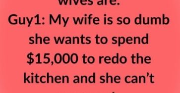 Three guys are having a few beers and talking about how dumb their wives are. Guy1: My wife is so dumb she wants to spend $15,000 to redo the kitchen and she can’t even cook. Guy 2: That’s nothing. My wife wants me to buy her a new $50,000 car and she can’t even drive … Read more