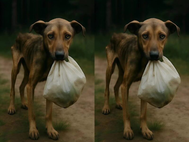 And in its mouth â a dirty, torn plastic bag. It held it as if it was everything it had left.