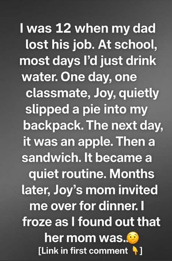When the narrator was 12, life took a sharp turn—her dad lost his job, and her once-comfortable family began struggling to make ends meet. The tension at home was quiet but constant: hushed conversations, unpaid bills, and a heaviness in her mother’s eyes. At school, it was worse. While classmates ate lunch, she sat with only a bottle of water, pretending not to be hungry, hiding her growing shame and hunger.